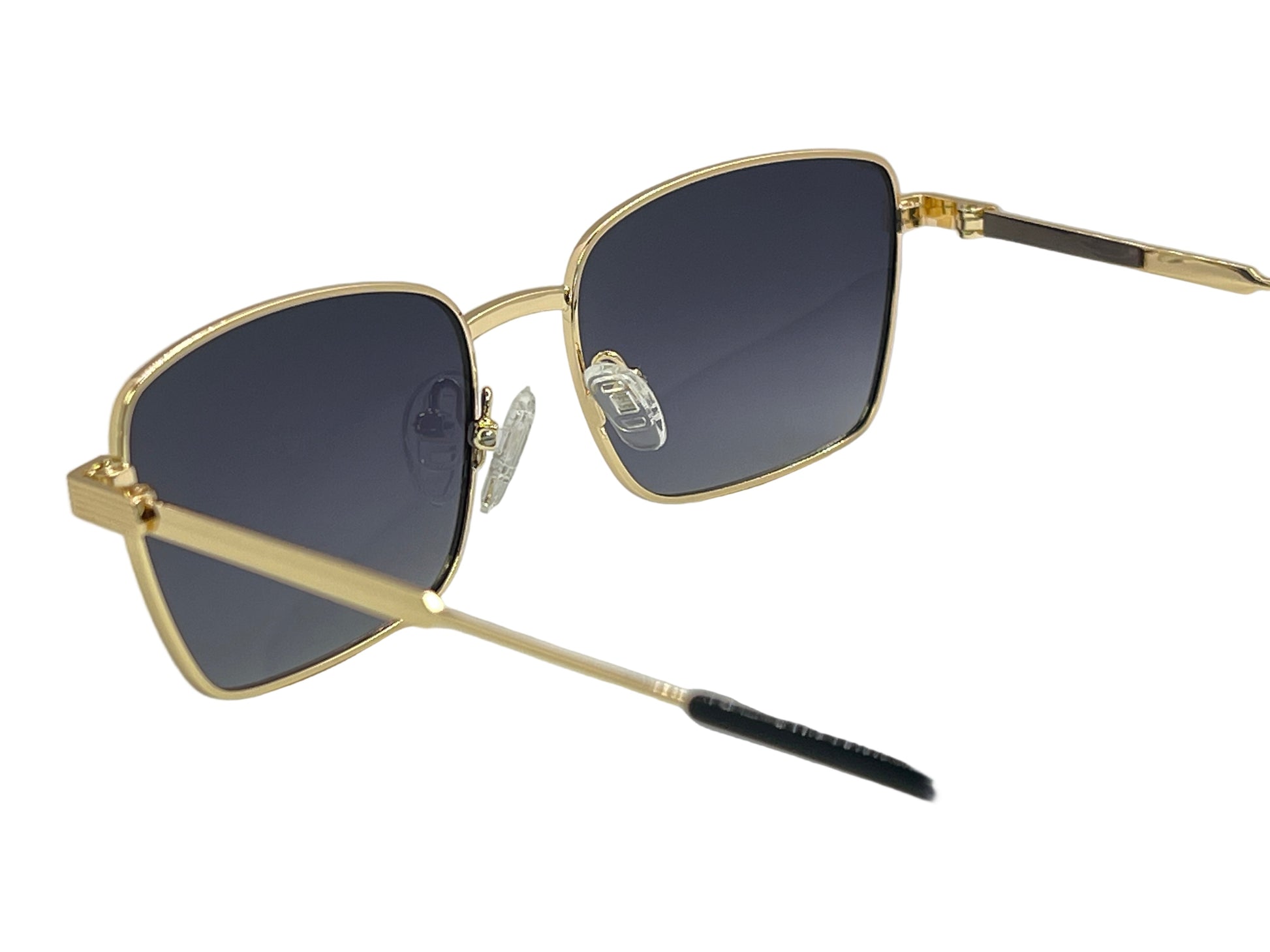 Light gold metal frame and dark lenses create a refined look that suits both men and women.